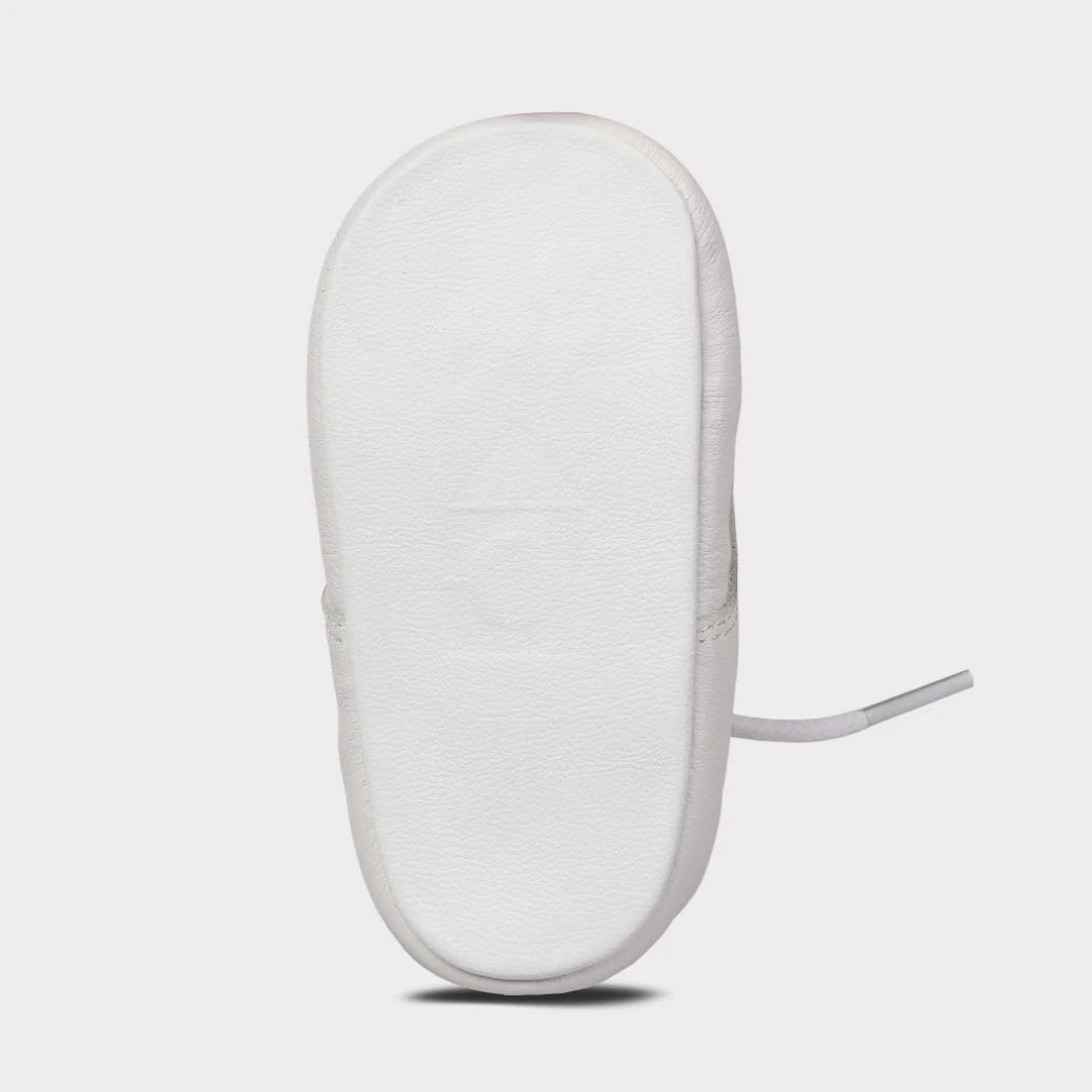 The August is a lace-up crib shoe with adorable lace details. This darling style is the shoe of choice for any special event. Perfect for that upcoming baby shower! It's made with a supple and soft leather upper and easy to put on with laces. Oomphies kids' shoes are kid-friendly and parent approved!