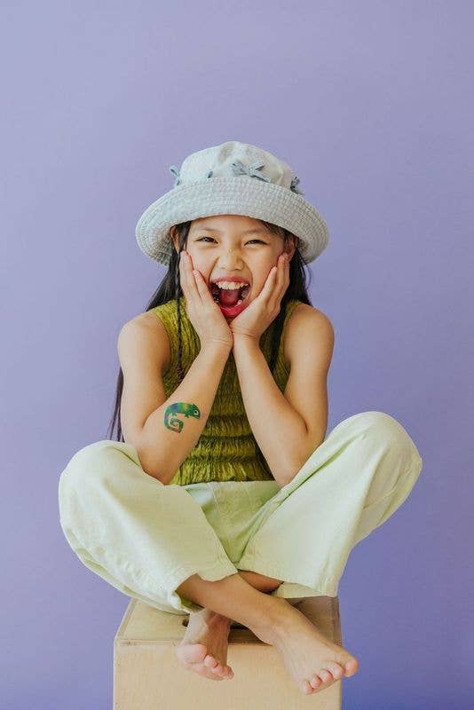 Did you know that chameleons change their color in response to lighting, temperature, and if they're feeling fear or anger? This colorful chameleon, designed by Peagreen, will stick with you for 2-4 days—regardless of your mood!