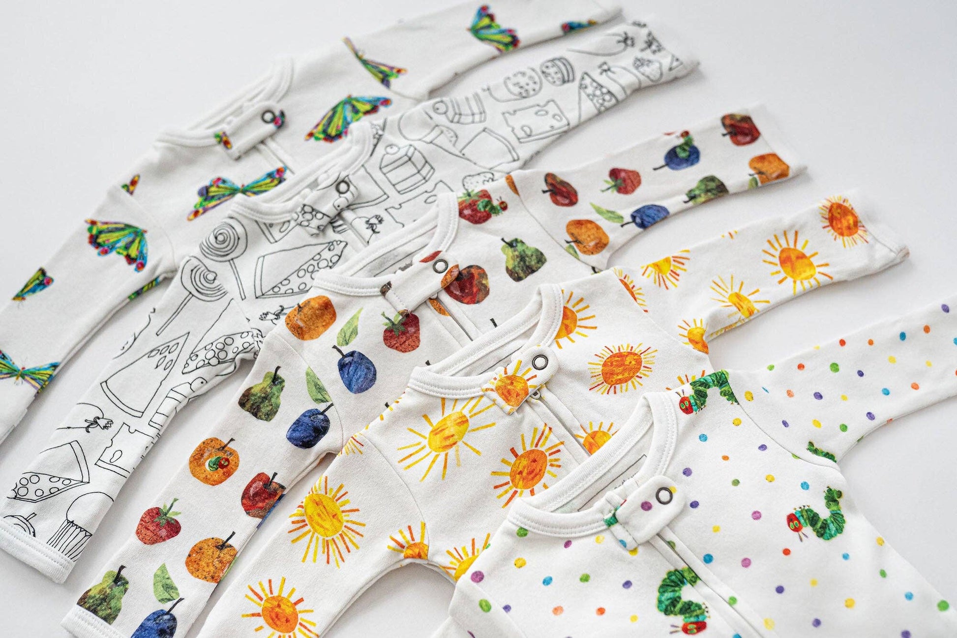 * featuring artwork from Eric Carle's The Very Hungry Caterpillar * GOTS-certified, 100% organic cotton * 2-way zipper baby footie opens from neck to ankle for easy dressing...and also from ankle to neck for easy diaper changing * zipper safety tab cover at neck * tiny zipper "pocket" at ankle for extra safety * chrome/lead/nickel-free zipper * fold-over, mitt-sleeves (in sizes preemie/nb to 6/9m) for added warmth and protection from self-scratching * rubber-dotted grip soles on all sizes to prevent slipping * thoughtfully designed with soft elastic on back of ankles for a stay-in-place fit * tagless for added comfort against baby's skin * azo-free, non-toxic, eco-friendly dyes * body-hugging fit to comply with safety standards * organic footie pairs perfectly with our cap and blanket for the ultimate take-me-home outfit * ethically made in India * L'ovedbaby® is an official licensee of the World of Eric Carle™