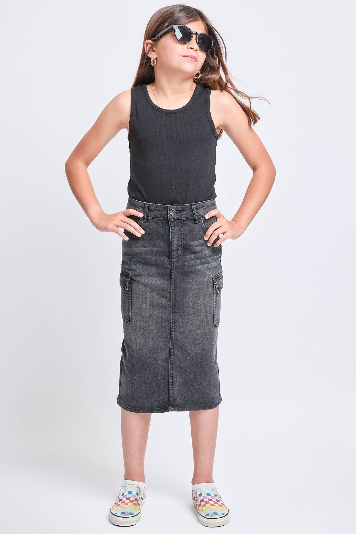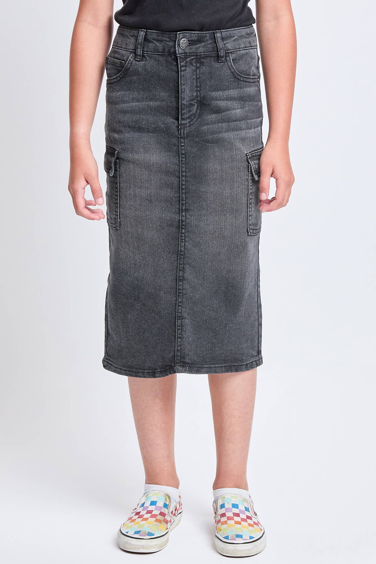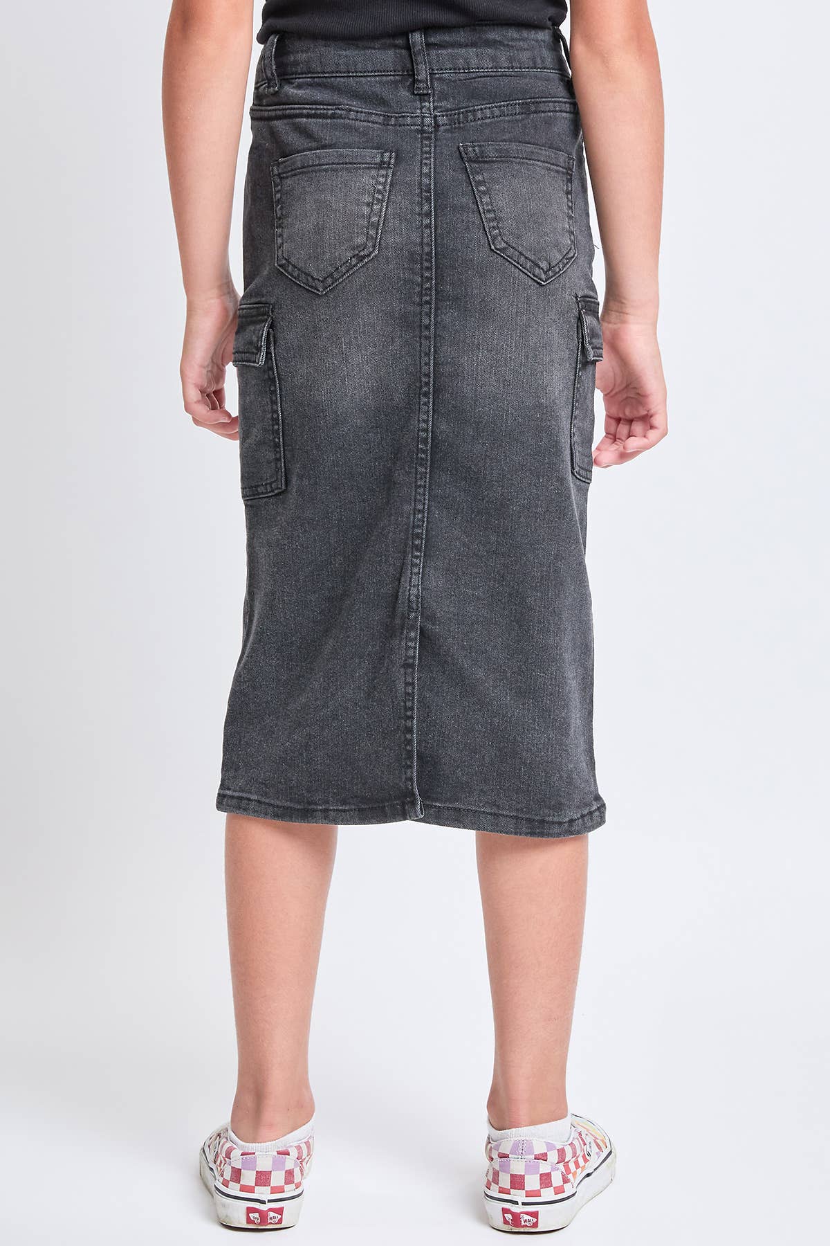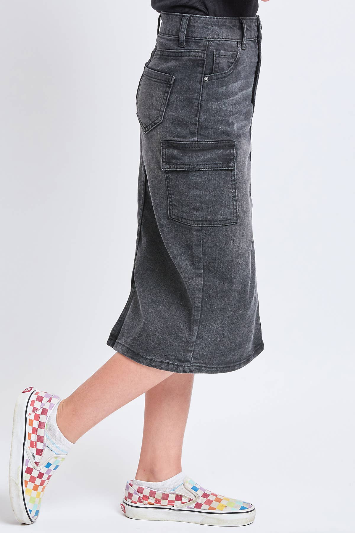 Girls Denim Long Cargo Clean Hem Skirt by YMI - a perfect blend of style and functionality for the modern trendsetter! Crafted with a clean hem design and a flattering long silhouette, this skirt offers a polished yet versatile look. The convenient 1-button closure with zipper ensures easy wear, while the back slit adds a touch of allure. Stand out with the trendy flap cargo pockets, perfect for adding a touch of utility-inspired charm to your outfit. Whether you're heading to a casual outing or a stylish event, this skirt is sure to make a statement. Elevate your wardrobe with the Girls Denim Long Cargo Clean Hem Skirt by YMI and embrace your unique style with confidence!