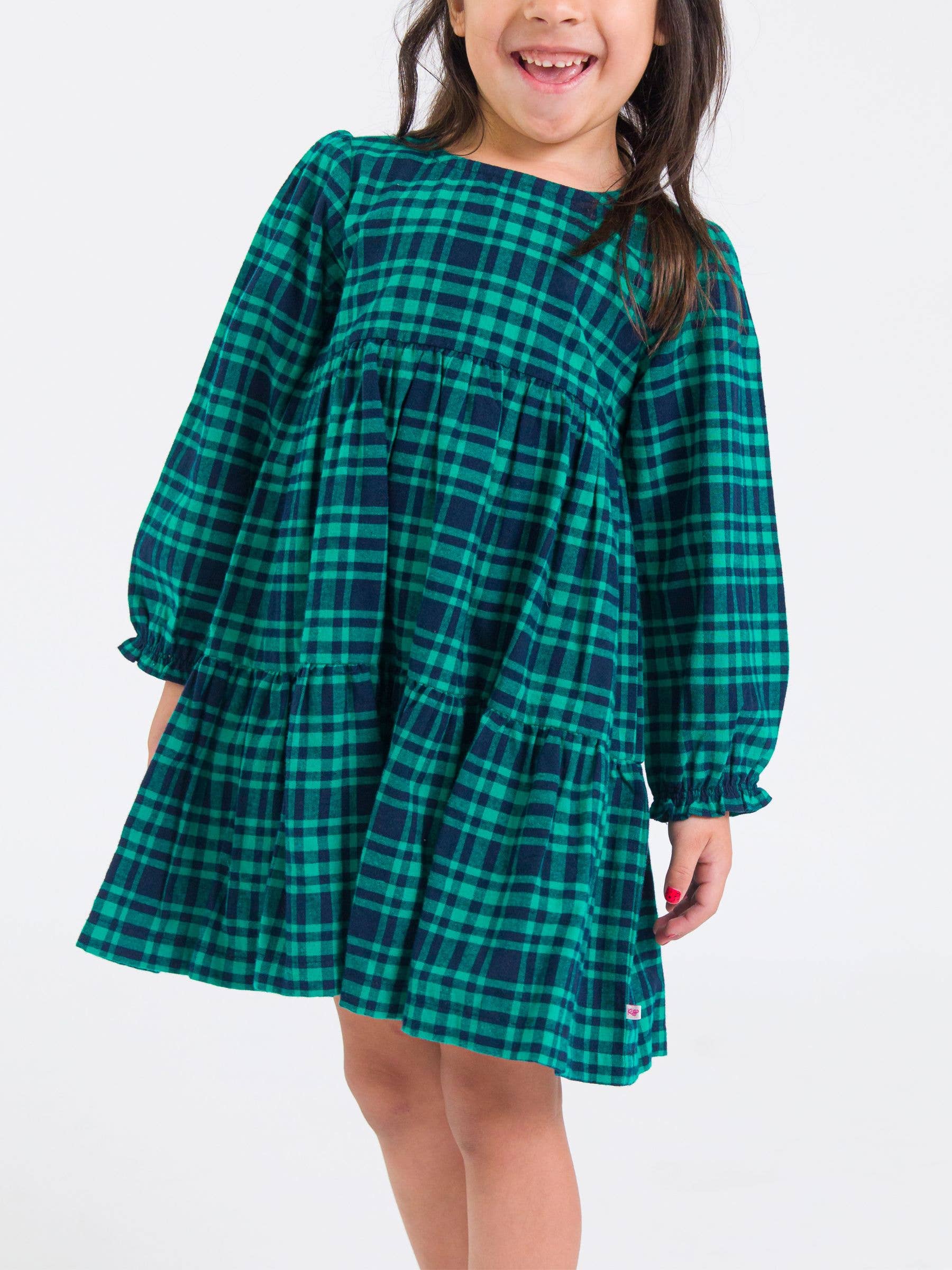 Girls Hayden Plaid Woven Long Sleeve Tiered Twirl Dress
