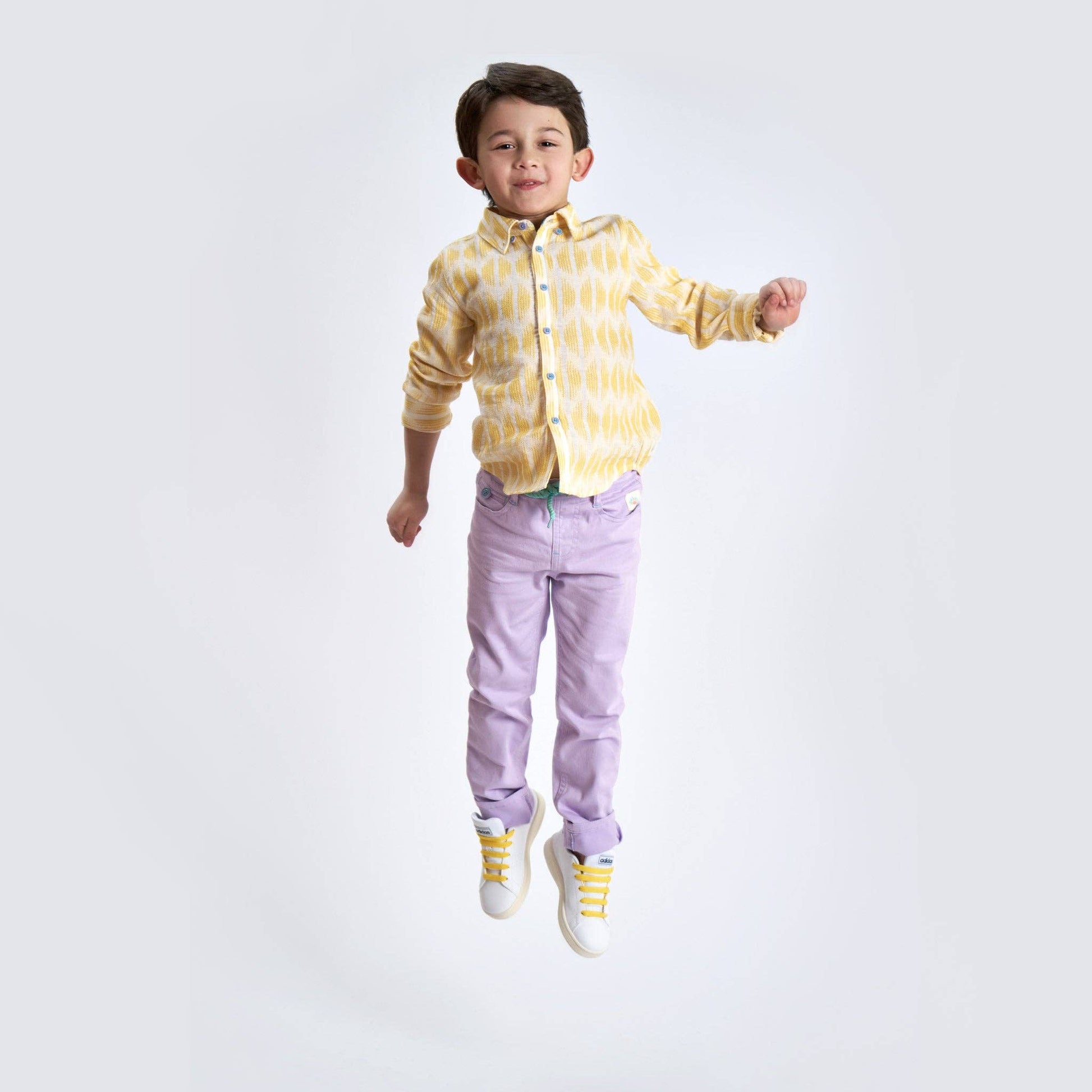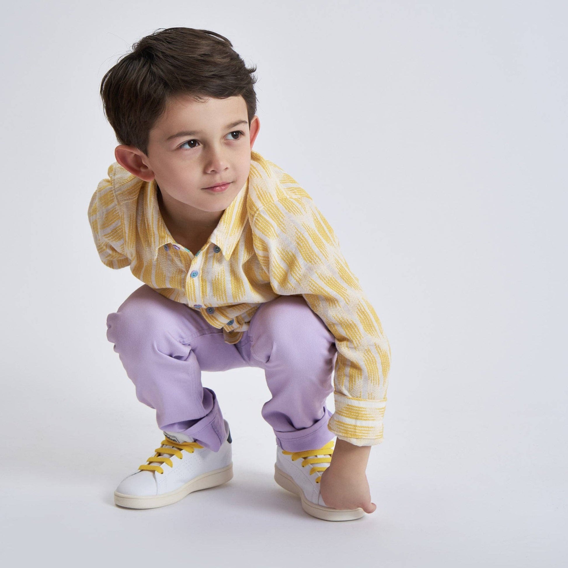 Your little man will look as dapper as can be in this sunshine-inspired button-down. A super fresh take on classic embroidery creates a winsome print that’s worth repeating in matching mama and sister styles.
