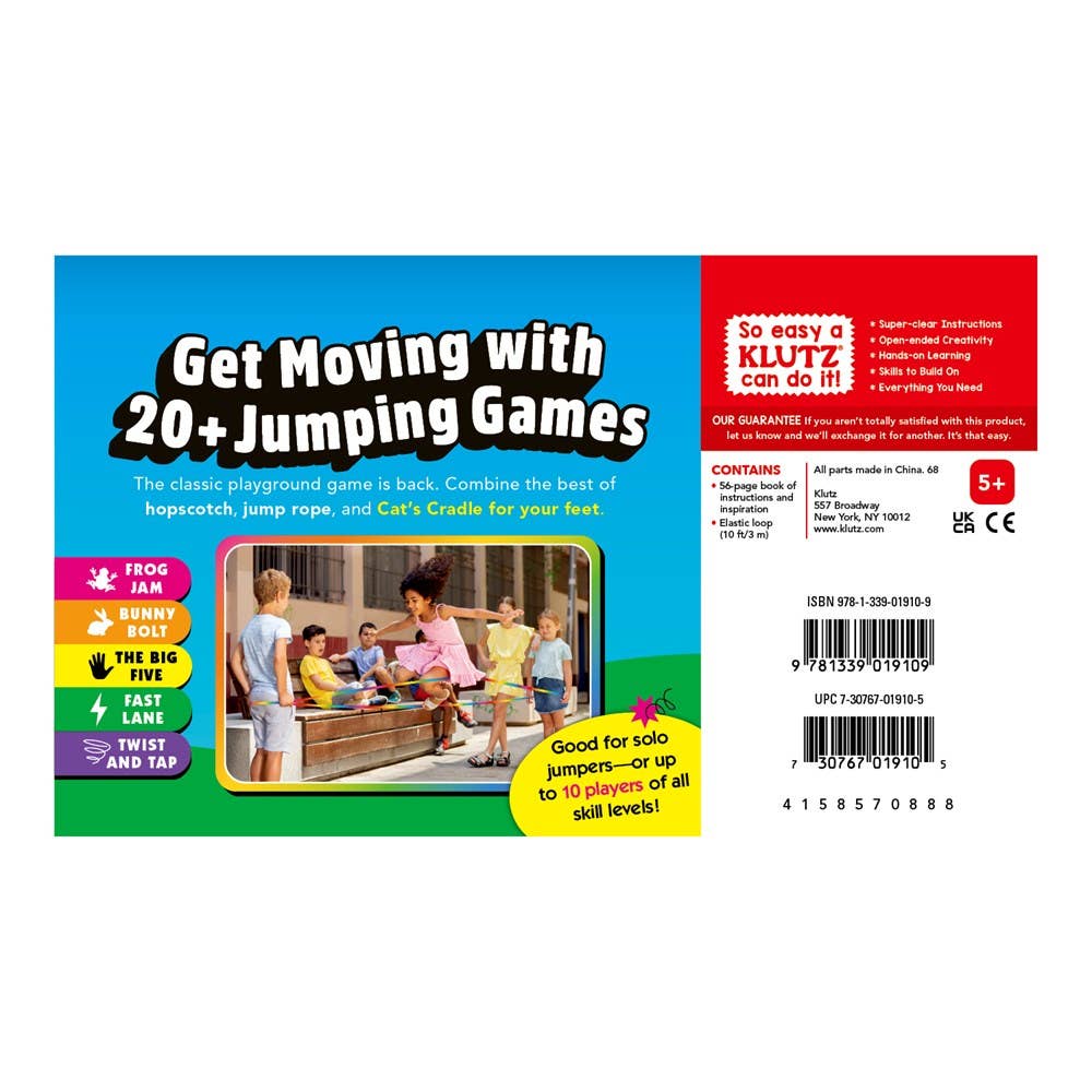 Learn how to play a classic playground game filled with activities for jumping, skipping, and hopping with stretchy rope.Jumpsies is not your ordinary jump rope game! This classic playground activity combines the joy of hopscotch, jump rope, and string games all in one. Played all around the world, Jumpsies has the timeless appeal of Cat's Cradle. A safety-tested stretchy rope plus a complete instructional book on games can get you jumping in no time. Jumpsies is a fun activity for boys, girls, and jumpers of all skill levels.