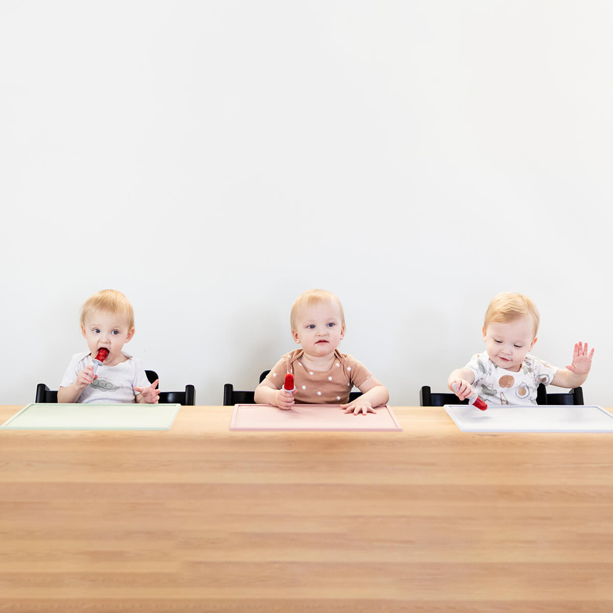 The Mini Placemat is a non-slip, silicone placemat that grips to the table, which means that it captures the mealtime mess. The mat’s stable base is also perfect for food play, crafting, sensory activities, and modeling clay. The placemat comes in a reusable bag, so you can use it on-the-go!