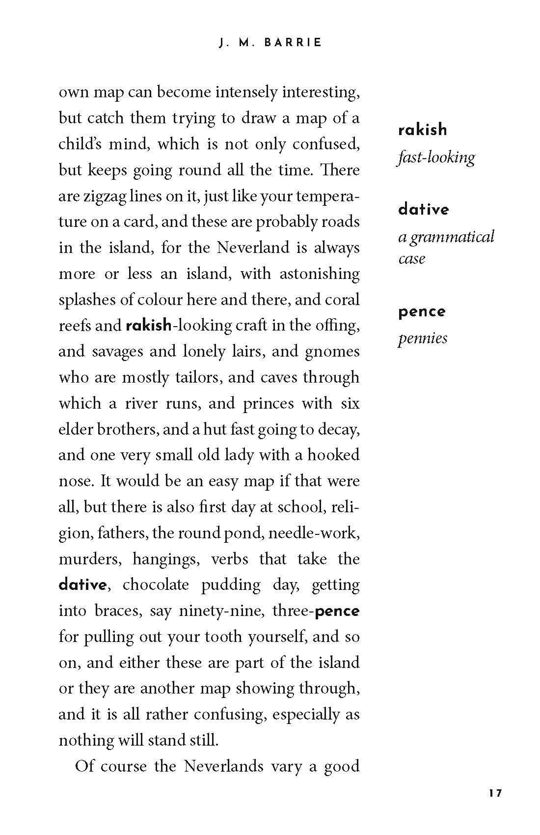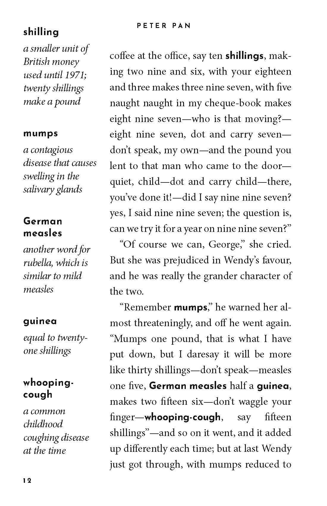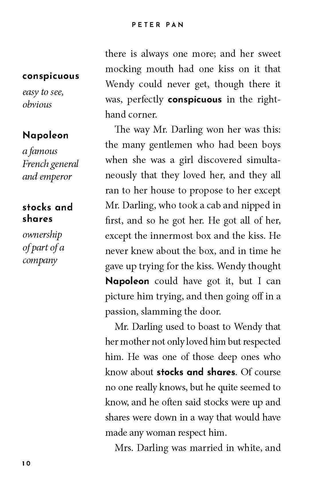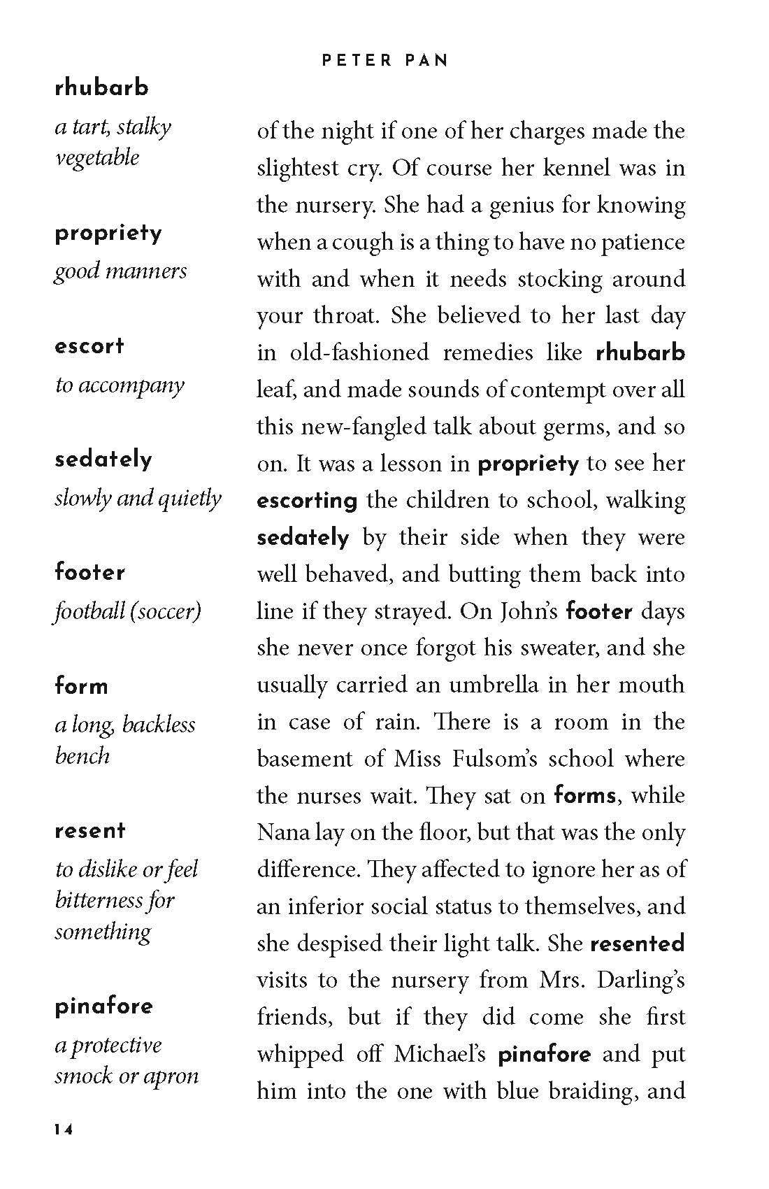 In Peter Pan: The Read-With-Me Edition, the unabridged text of the beloved story of Peter, Captain Hook, and Neverland is broken down into easy, twenty-minute chunks—perfect for daily read-alouds. Thoughtful questions after each passage boost comprehension and facilitate meaningful discussion, while definitions in the margins make it easy for parents to explain what challenging words might mean. Learn vocabulary, strengthen literacy, introduce the classics, and bond over beautiful literature in just 20 minutes a day!