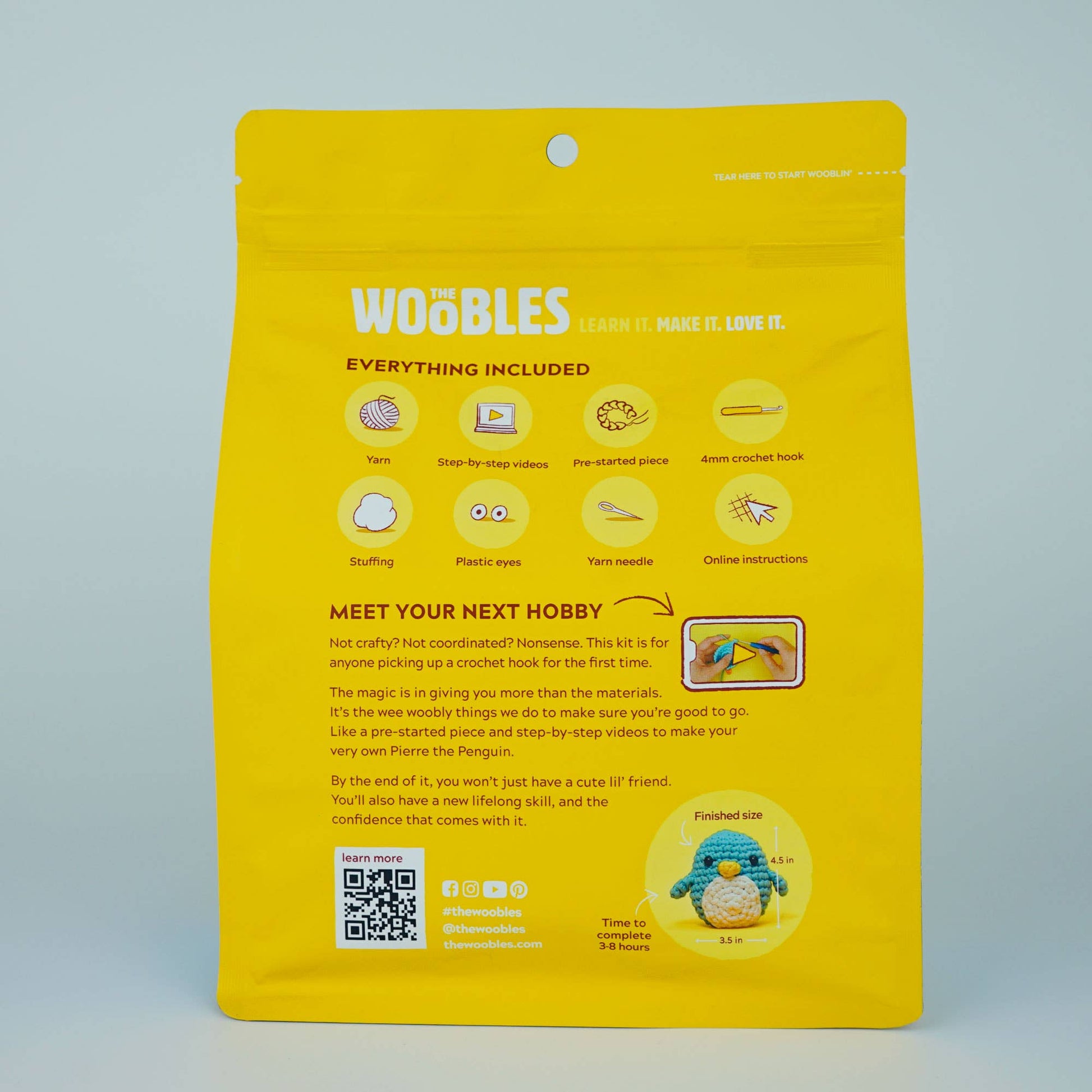Introducing Pierre the Penguin - The Woobles Penguin Crochet Kit. The Woobles Penguin Crochet Kit is perfect for beginners! The kit includes all the materials you need, plus step-by-step video tutorials that expertly guide you through each stitch and technique that matches the kit in your hands. These tutorials are designed to take the stress out of starting your project and make it easy for new crafters to dive straight into the fun. In addition to the video tutorials, the kit includes everything you need to get started on your crochet journey; - Pre-started character - Custom-made Easy Peasy yarn that cannot fray - 4mm crochet hook - Stuffing - Plastic eyes - Tapestry needle - Stitch markers For Ages 12+ Christmas Gifts Stocking Stuffer Holiday Holiday Sale Gifts for Women Gifts for Men Hannukah