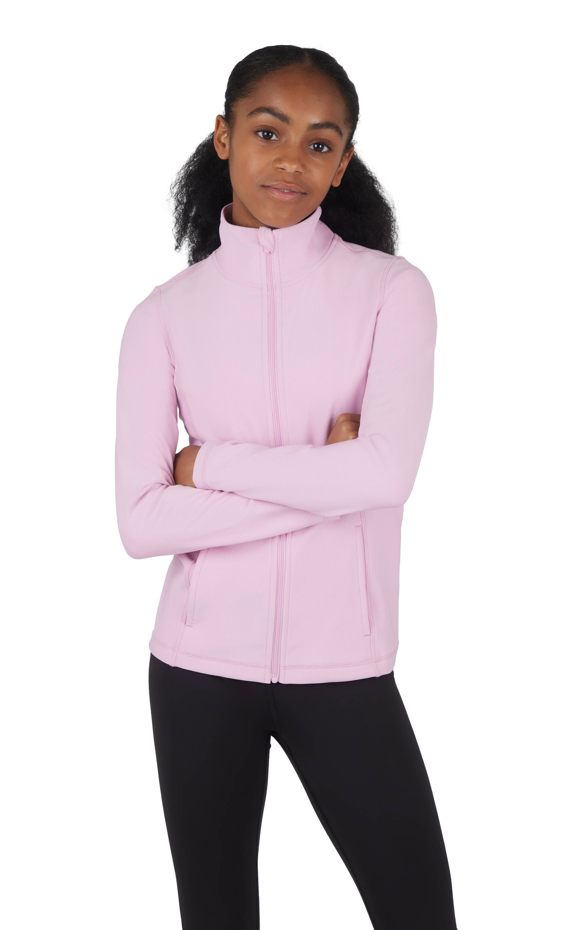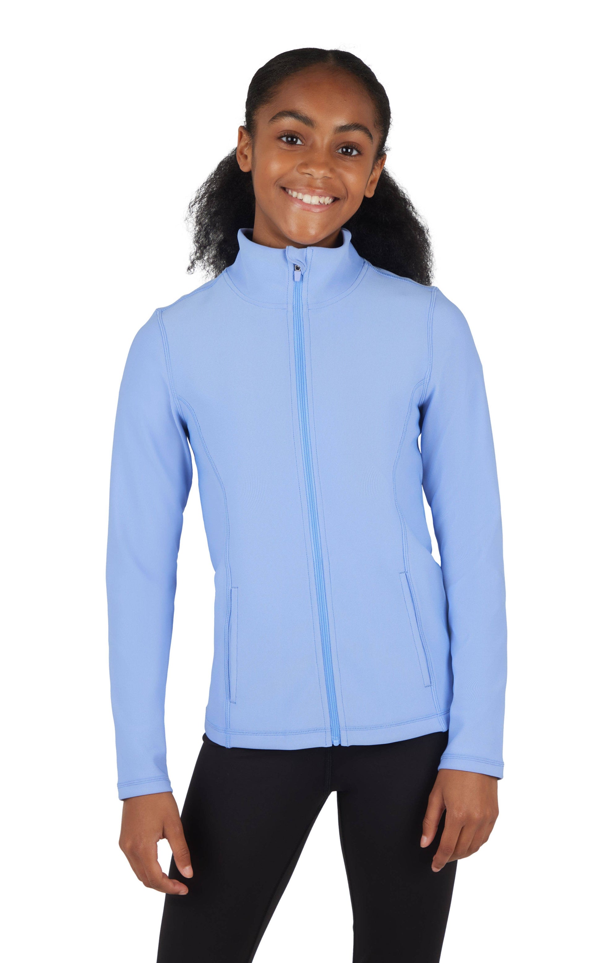 Girls Rib Zipper Everyday Essential Jacket Front Pockets - This is great everyday jacket for year around! - Great for all activities and school - Ribbed fabric - Machine Wash Cold - Lay flat to dry, no heat Material: 82% Polyester 18% Spandex