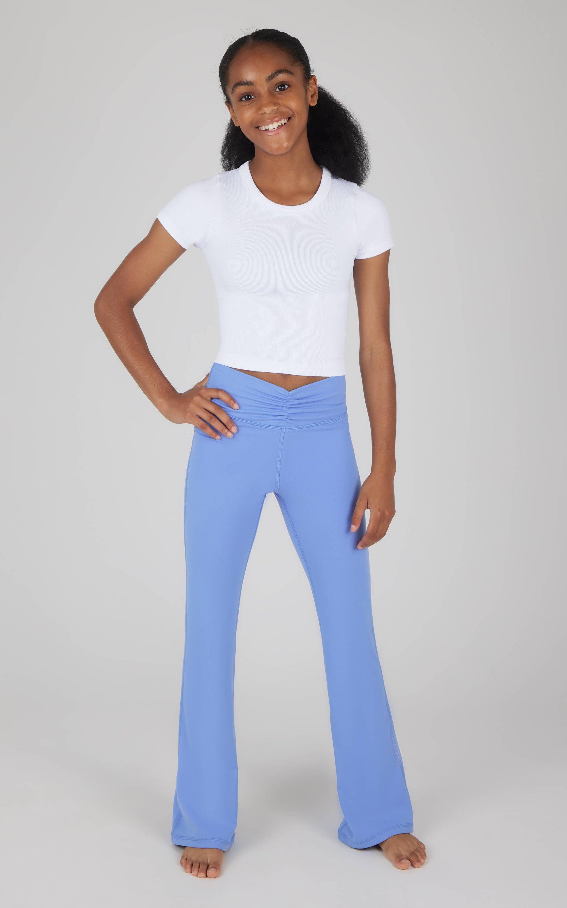 Girls Lux Waist Band Ruching Flare Pant - Buttery soft fabric - Easy to style, great for everyday - Elastic Free Waistband - Machine Wash Cold - Lay flat to dry, no heat -