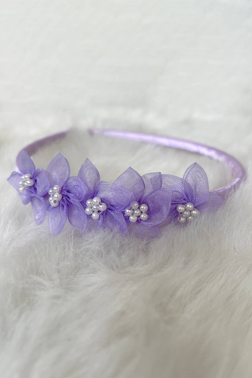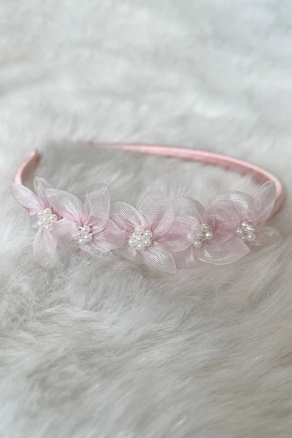 The organza headband with pearls is an adorable accent piece for any girl's dress.