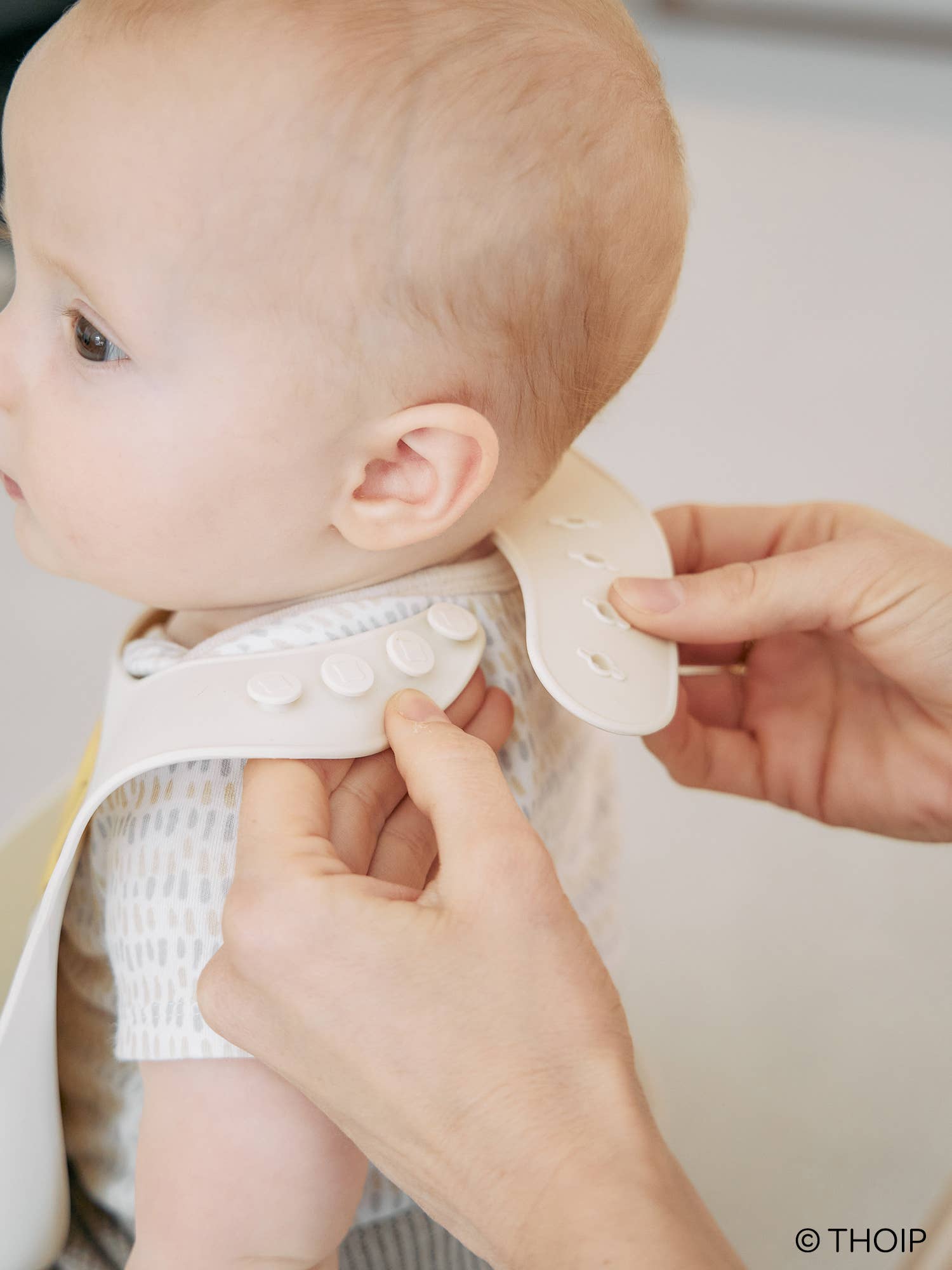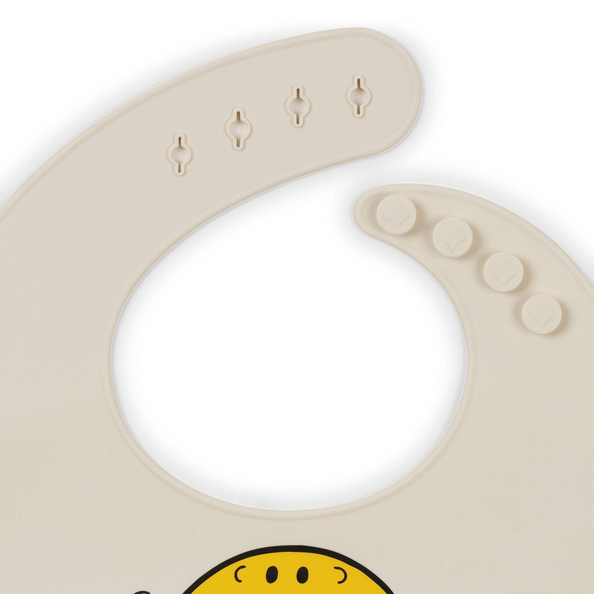 Keep Baby's clothes clean and dry during feeding time with a food-grade Silicone Bib from JuJuBe × Studio Oh! Featuring the iconic Mr. Happy character from Mr. Men Little Miss™ on the front, these bibs make a fun and practical addition to mealtimes. Made for babies 4 months and older, each bib features a deep front pocket to catch messes, and because they are dishwasher-safe, cleanup is fast and easy! You'll also find four ouch-free fasteners at the back of the neck strap, so it will stay comfortable as your baby grows. The Silicone Bib is BPA-free, PVC-free, phthalate-free, and lead-free. This product is manufactured by Orange Circle Studio, under license from MR. MEN™ LITTLE MISS™ © 2024 THOIP (a SANRIO Company). All rights reserved. 9"W × 11"H (22.8 cm × 27.9 cm)