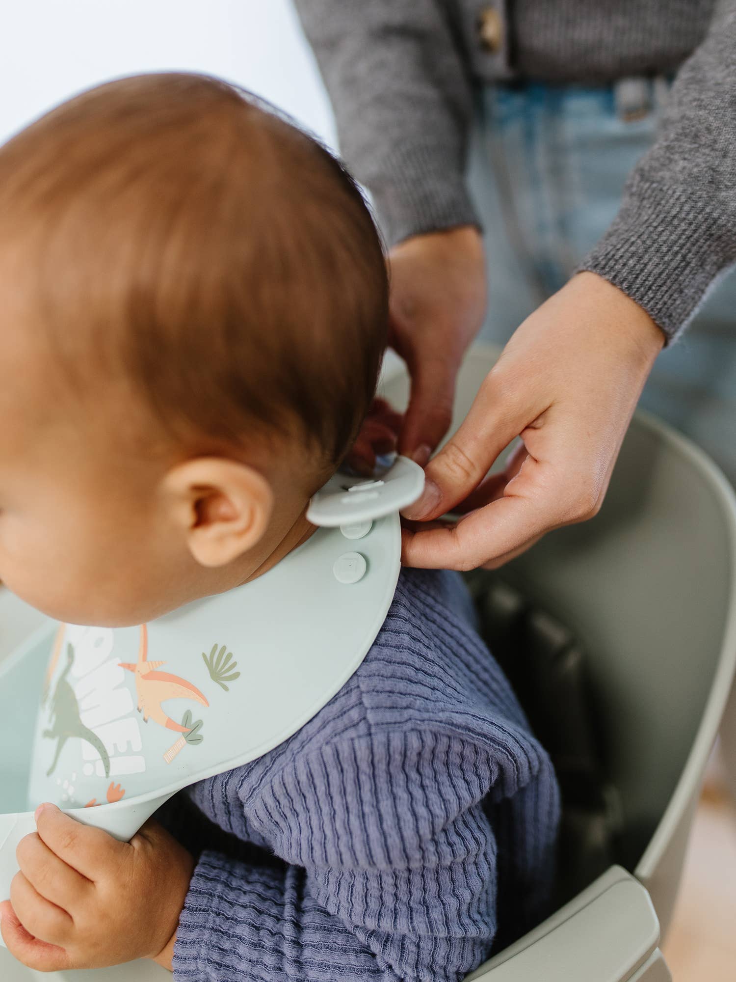 Keep your baby’s clothes clean and dry during feeding time with a food-grade Silicone Bib from JuJuBe × Studio Oh! Made for babies 4 months and older, these bibs feature a deep front pocket to catch messes, and because they are dishwasher-safe, cleanup is fast and easy! Designed to fit comfortably and stay put, each bib features four ouch-free fasteners at the back of the neck strap, so it will stay comfortable as your baby grows. The Silicone Bib is BPA-free, PVC-free, phthalate-free, and lead-free, giving parents peace of mind while keeping mealtimes mess free! 9"W × 11"H (22.8 cm × 27.9 cm)