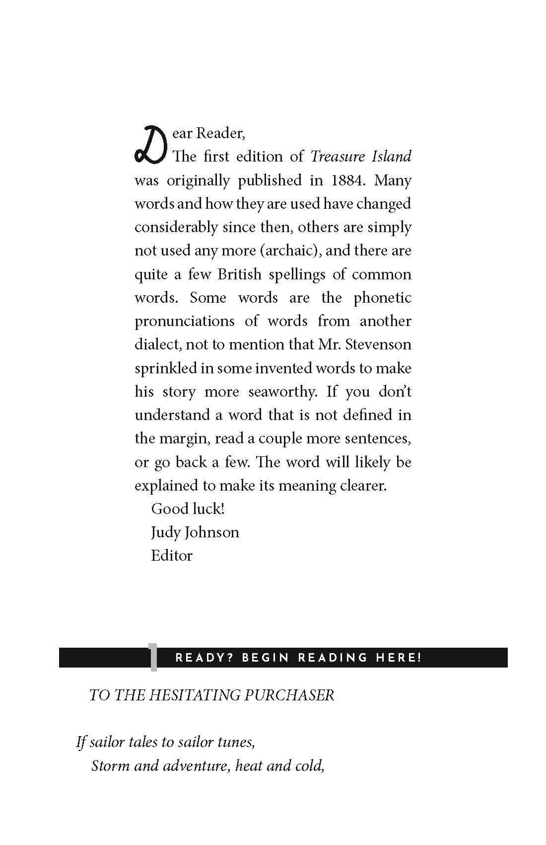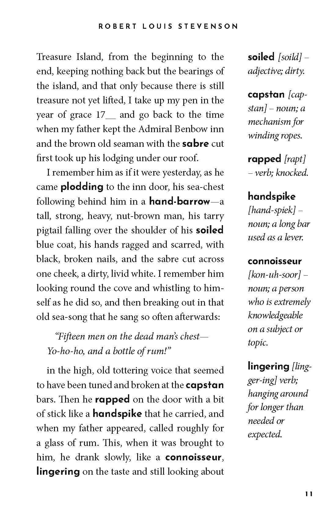 In Treasure Island: The Read-With-Me Edition, the unabridged text of the exciting story of Jim Hawkins, the pirates, and Long John Silver is broken down into easy, twenty-minute chunks—perfect for daily read-alouds. Thoughtful questions after each passage boost comprehension and facilitate meaningful discussion, while definitions in the margins make it easy for parents to explain what challenging words might mean. Learn vocabulary, strengthen literacy, introduce the classics, and bond over beautiful literature in just 20 minutes a day!